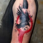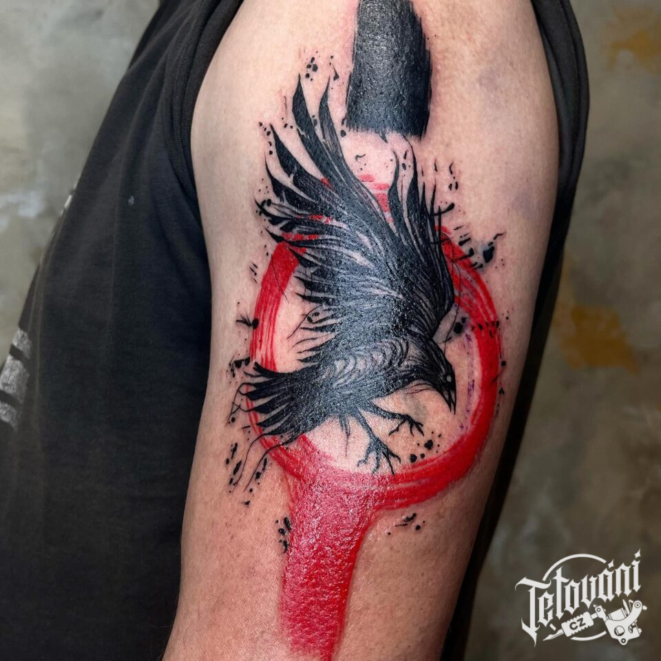 Tetování zvíře havran a kruh na rameno
