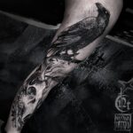 Tetování zvíře havran, lebka na nohu