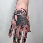 Tetování zvíře havran, měsíc na hřbet ruky