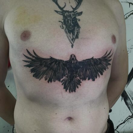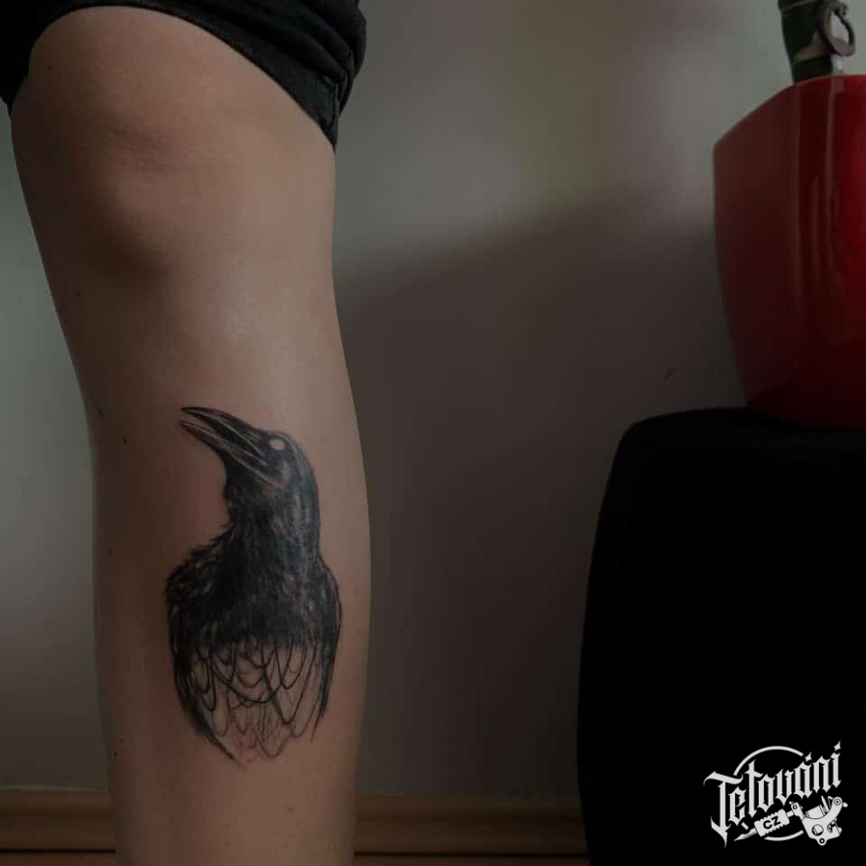 Tetování zvíře havran na holeň