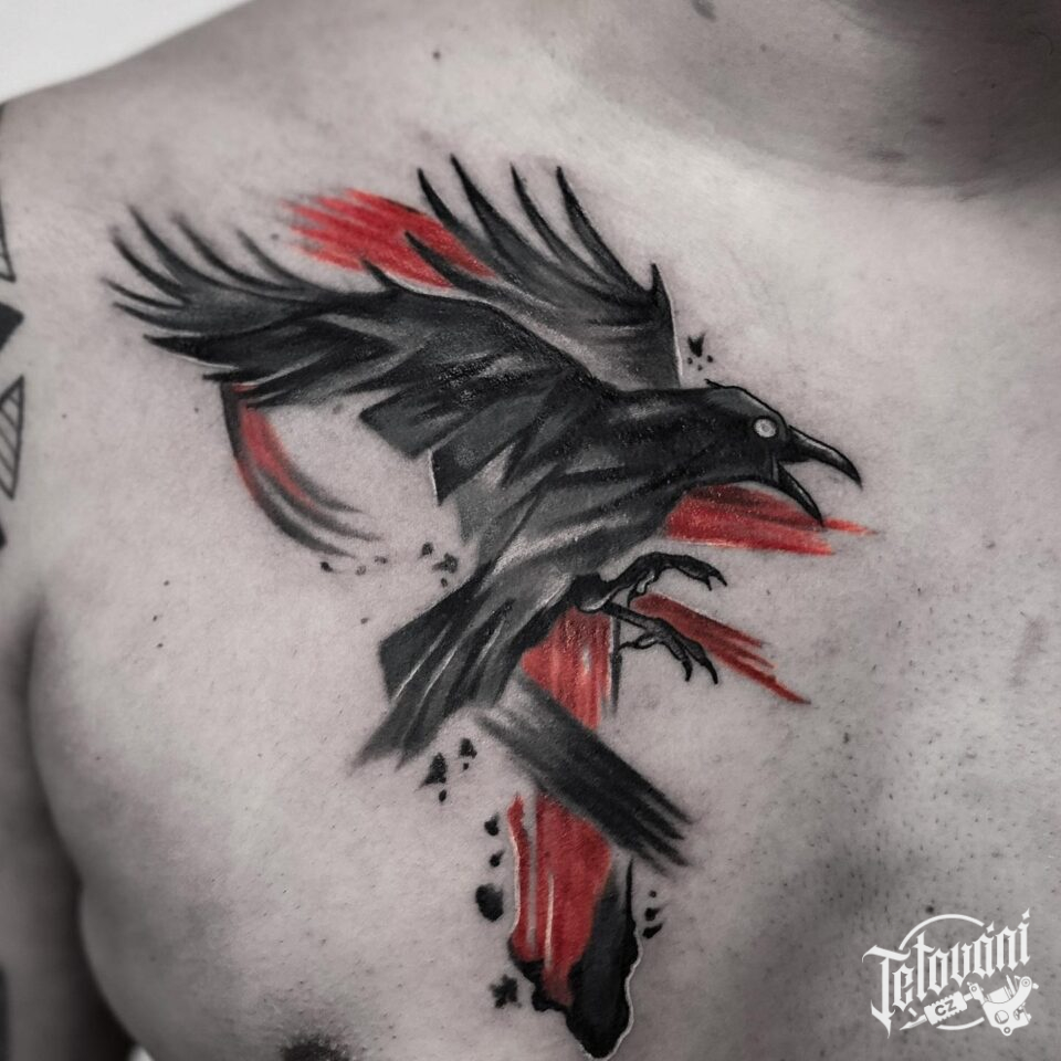 Tetování zvíře havran na prso