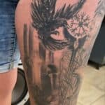 Tetování zvíře havran, vikingové na stehno