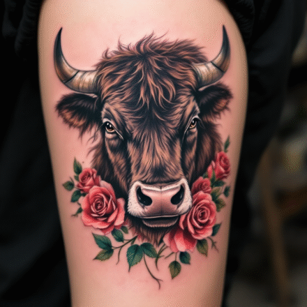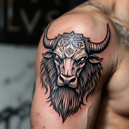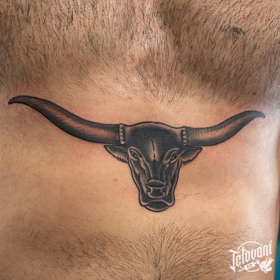 Tetování zvíře, hlava býka na břichu