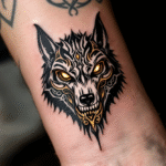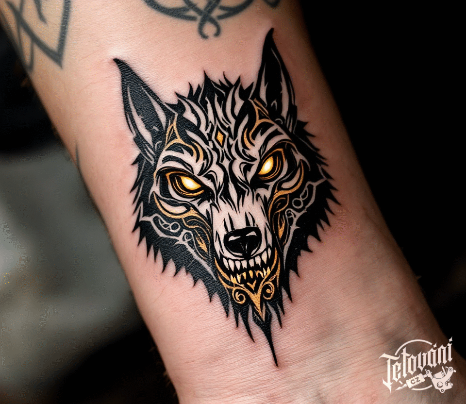 Tetování zvíře, hlava keltského vlka na předloktí