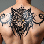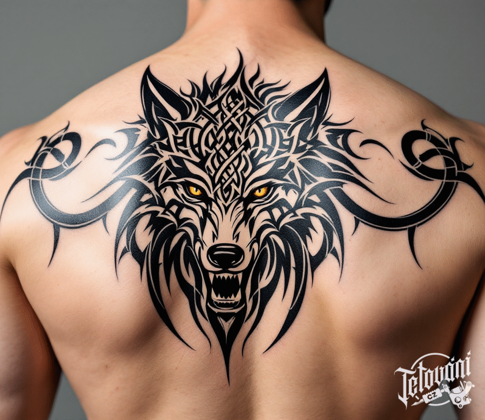 Tetování zvíře, hlava keltského vlka na zádech