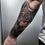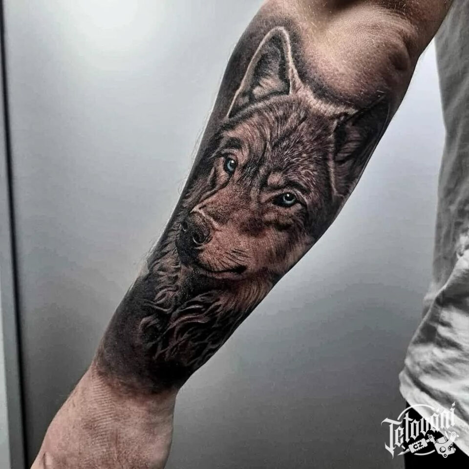 Tetování zvíře, hlava vlka na předloktí