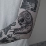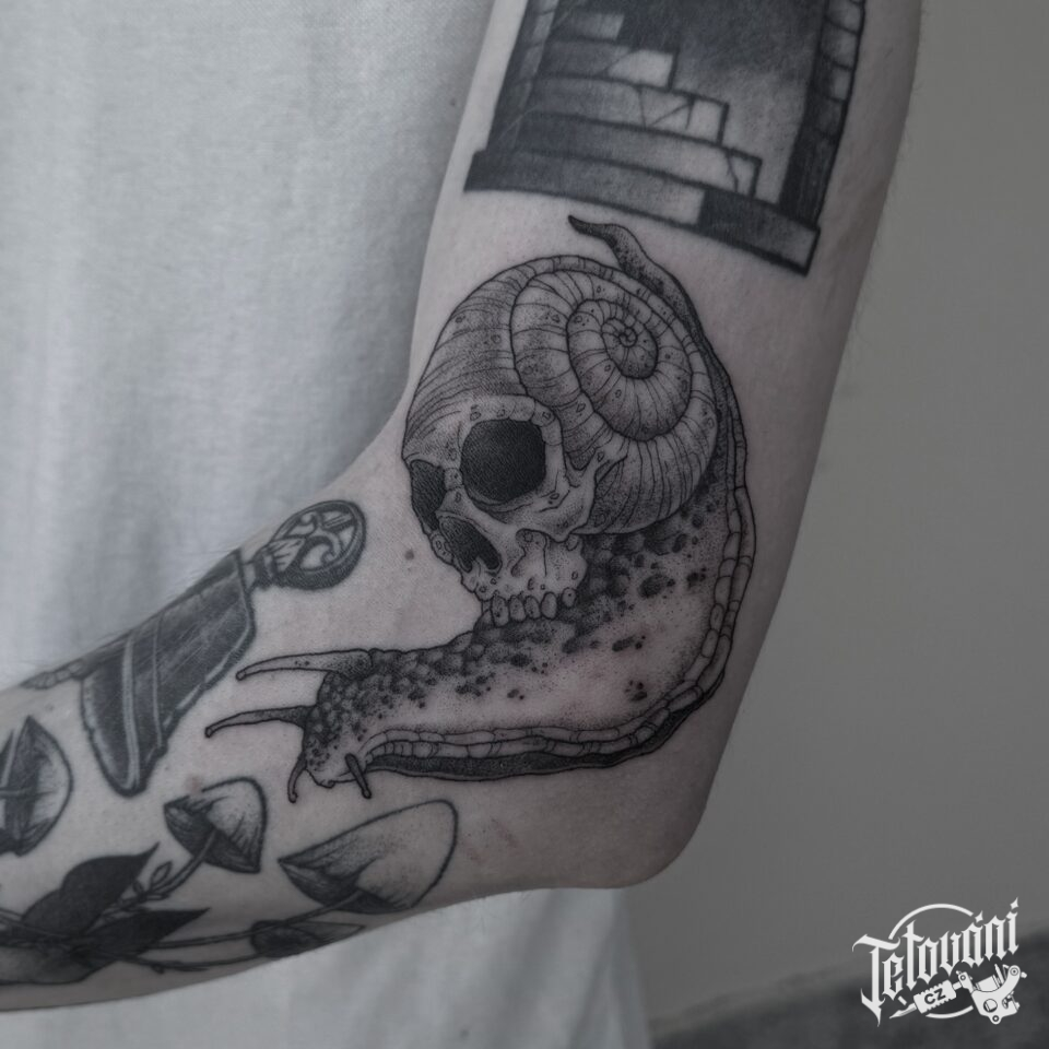 Tetování zvíře, hlemýžď s lebkou na loket