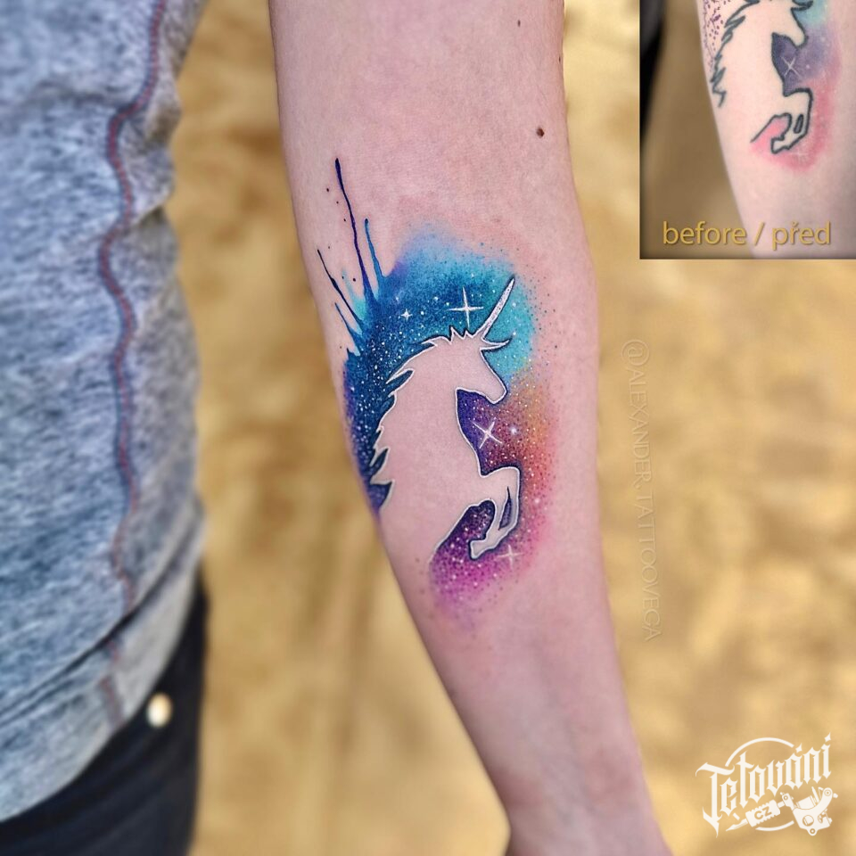 Tetování zvíře, jednorožec na předloktí