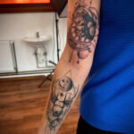 Tetování zvíře, jelen a hodiny, planety na ruce