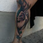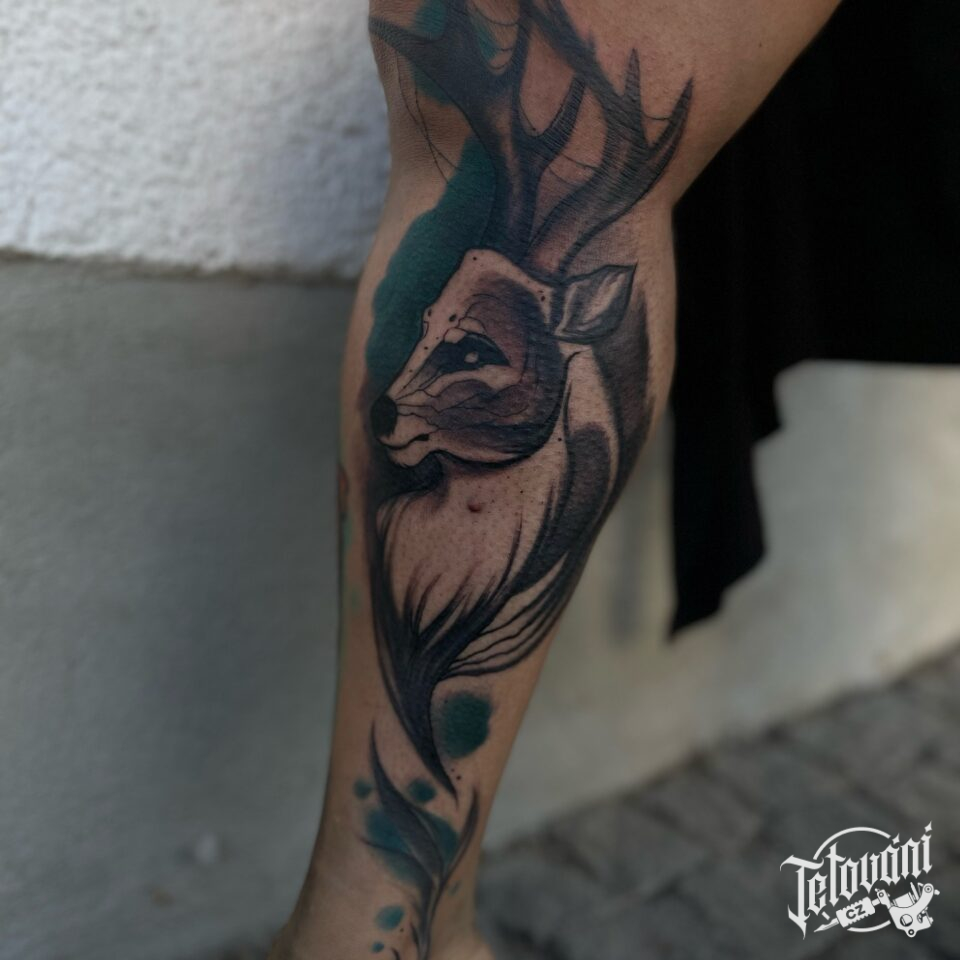 Tetování zvíře jelen na lýtko