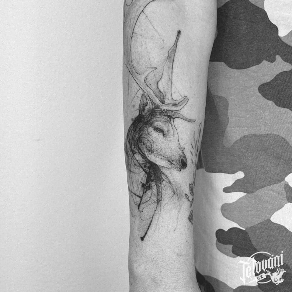 Tetování zvíře, jelen na předloktí