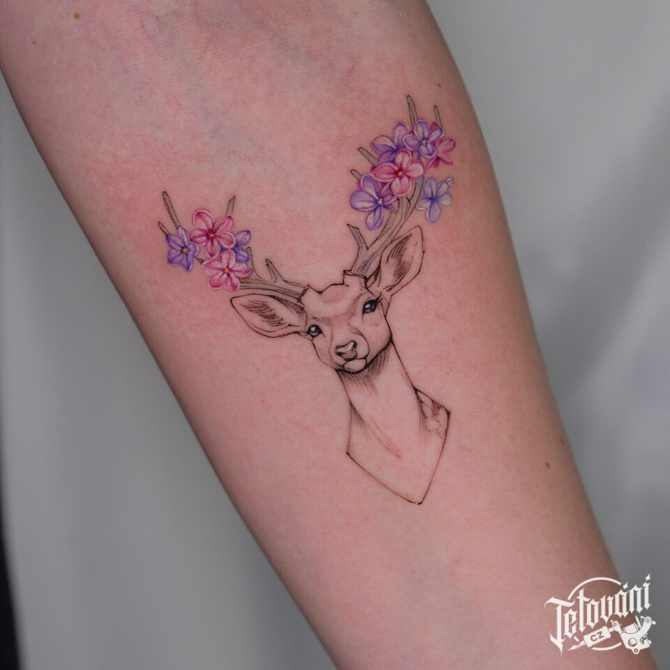 Tetování zvíře, jelen na předloktí