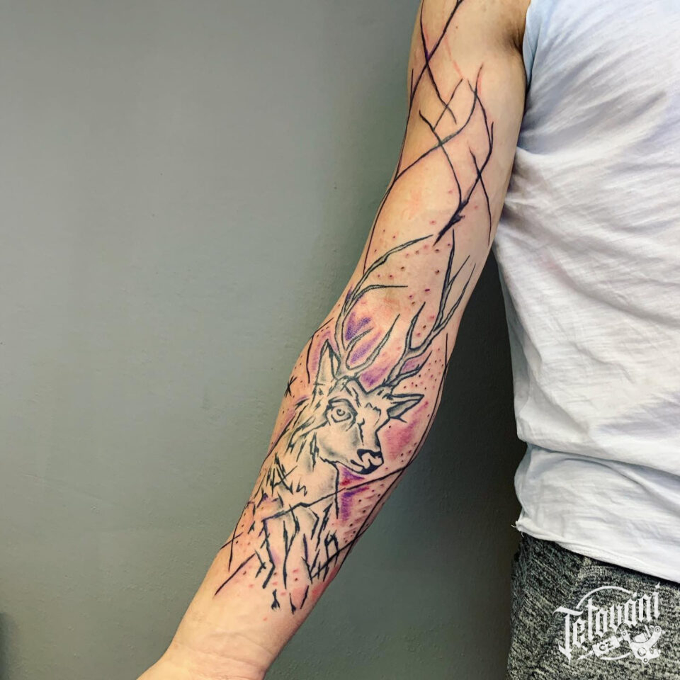 Tetování zvíře, jelen na předloktí