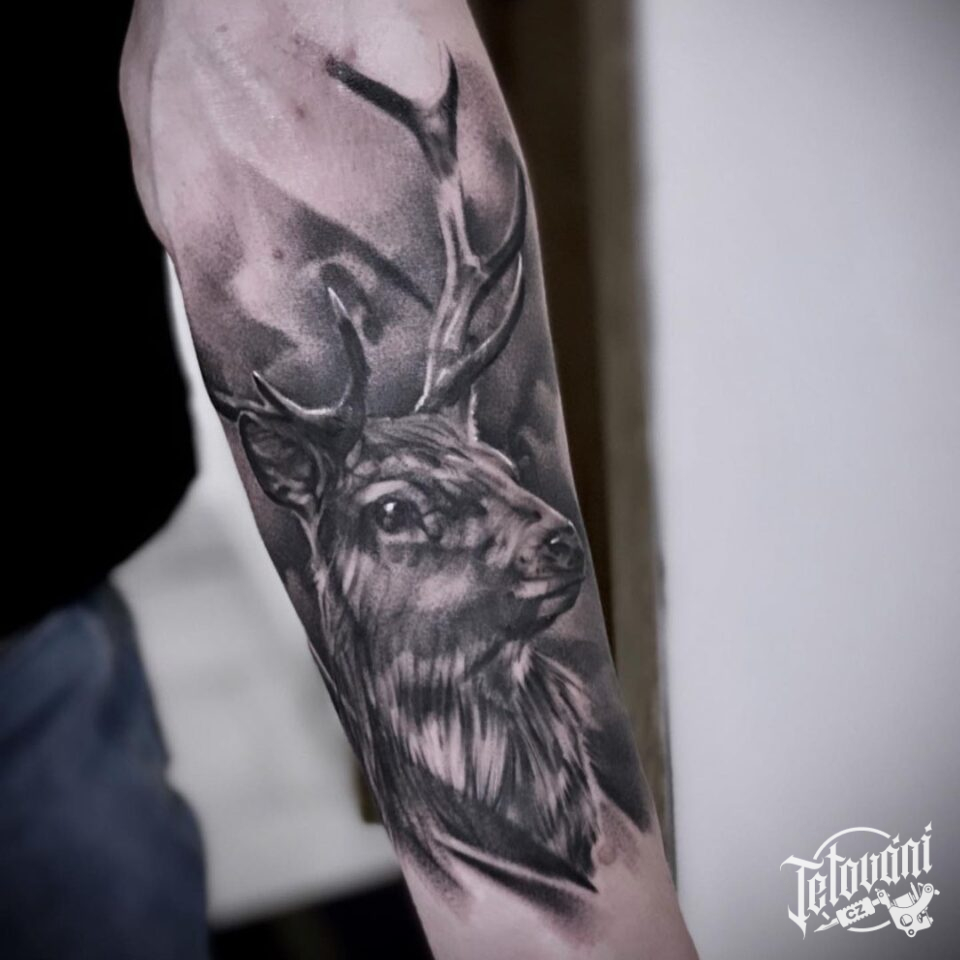 Tetování zvíře, jelen na předloktí
