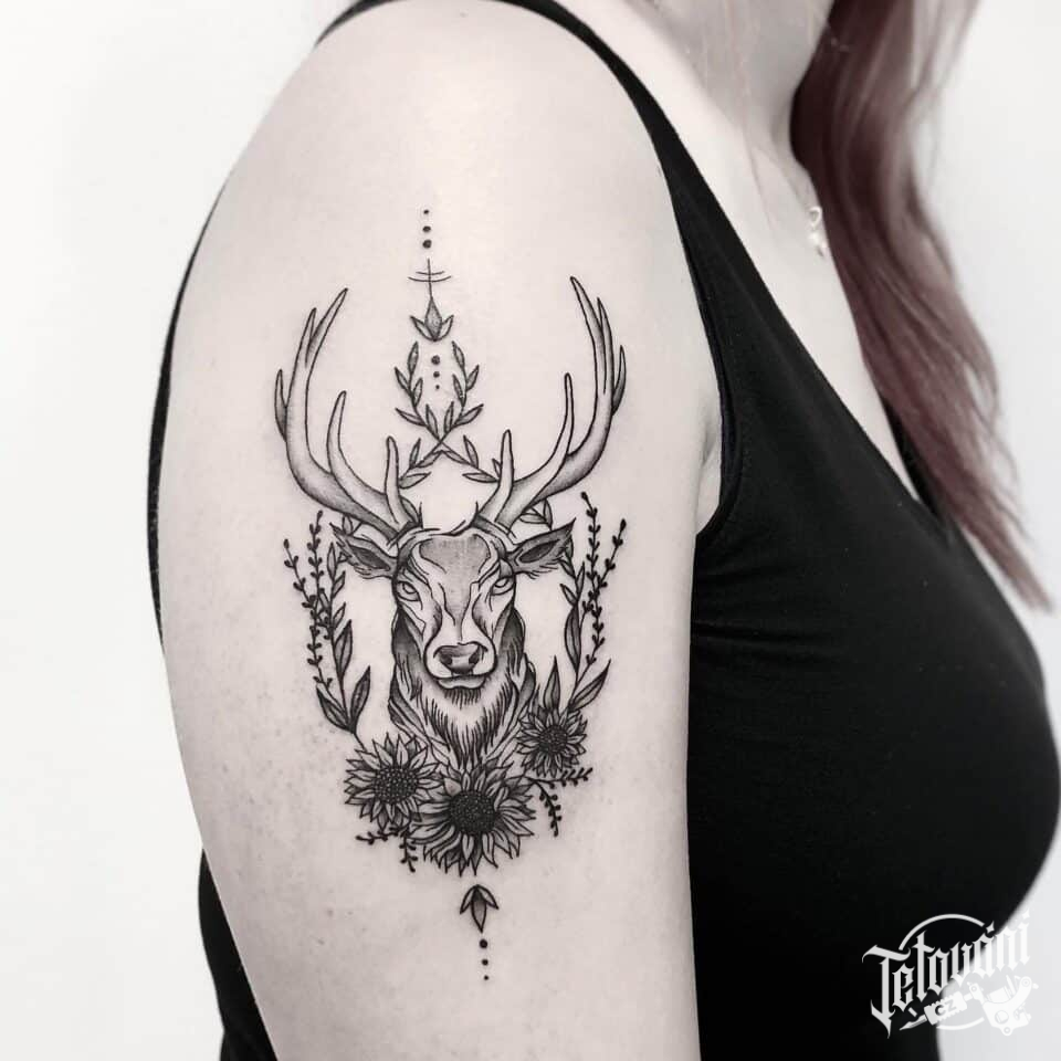 Tetování zvíře jelen na rameno