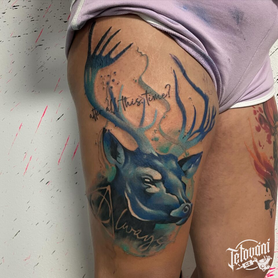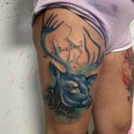 Tetování zvíře, jelen na stehně