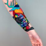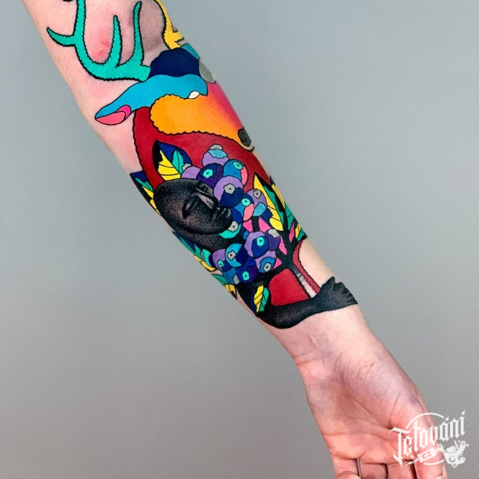Tetování zvíře jelen, znaky a symboly na předloktí