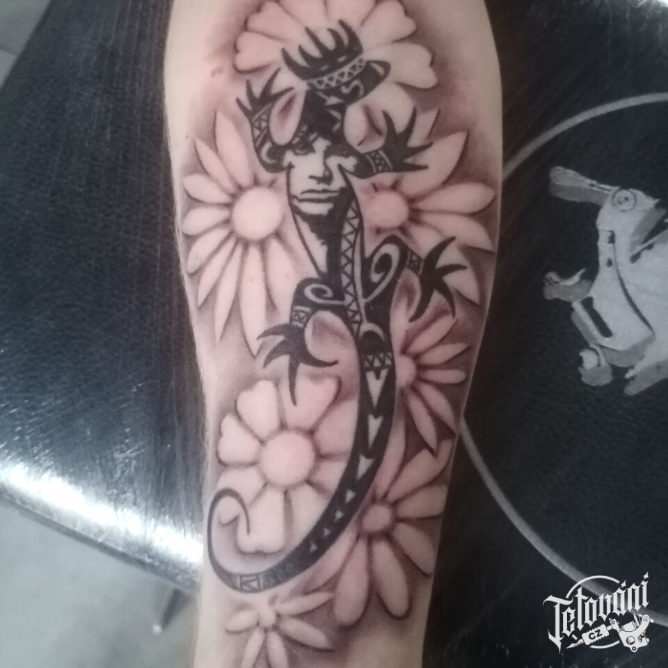 Tetování zvíře, ještěrka na předloktí