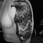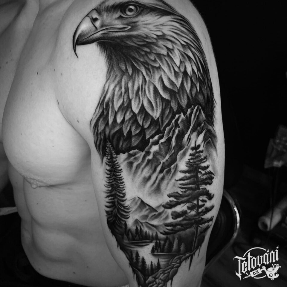 Tetování zvíře káně, pták, příroda, hory na rameno