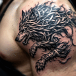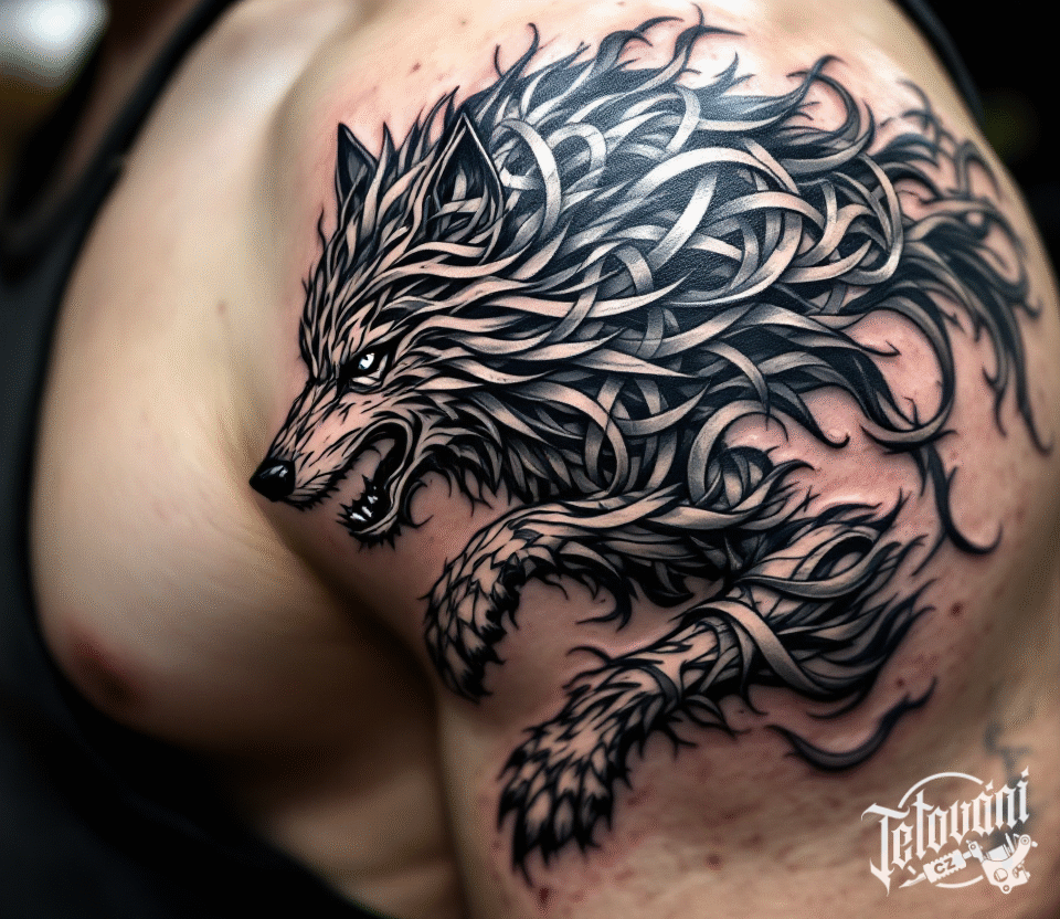 Tetování zvíře, keltský vlk na rameni