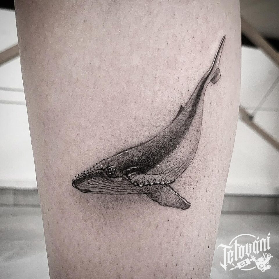Tetování zvíře keporkak na lýtku