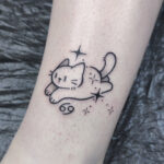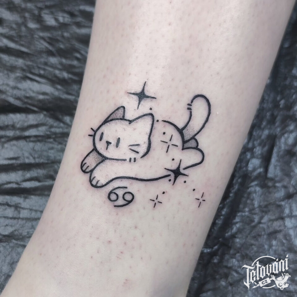 Tetování zvíře, kočka a ryby znamení zvěrokruhu na noze