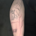 Tetování zvíře kočka, květina na rameno