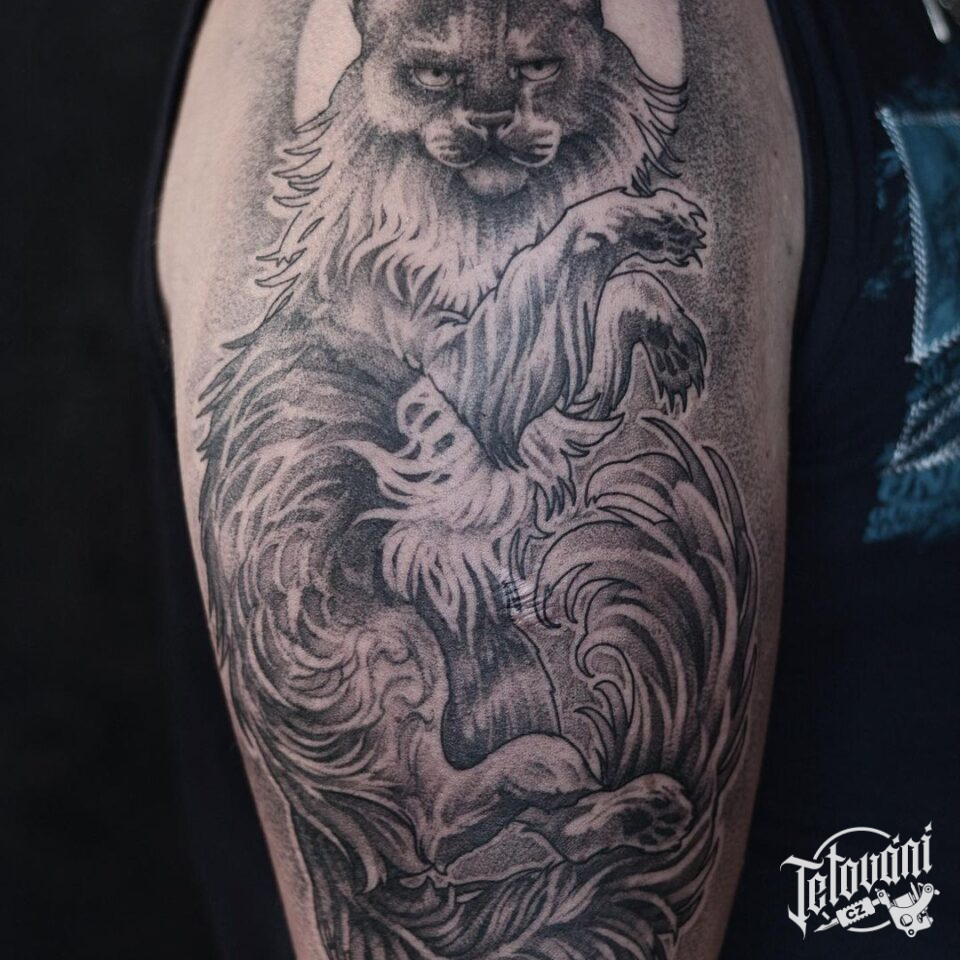 Tetování zvíře kočka, měsíc na rameno