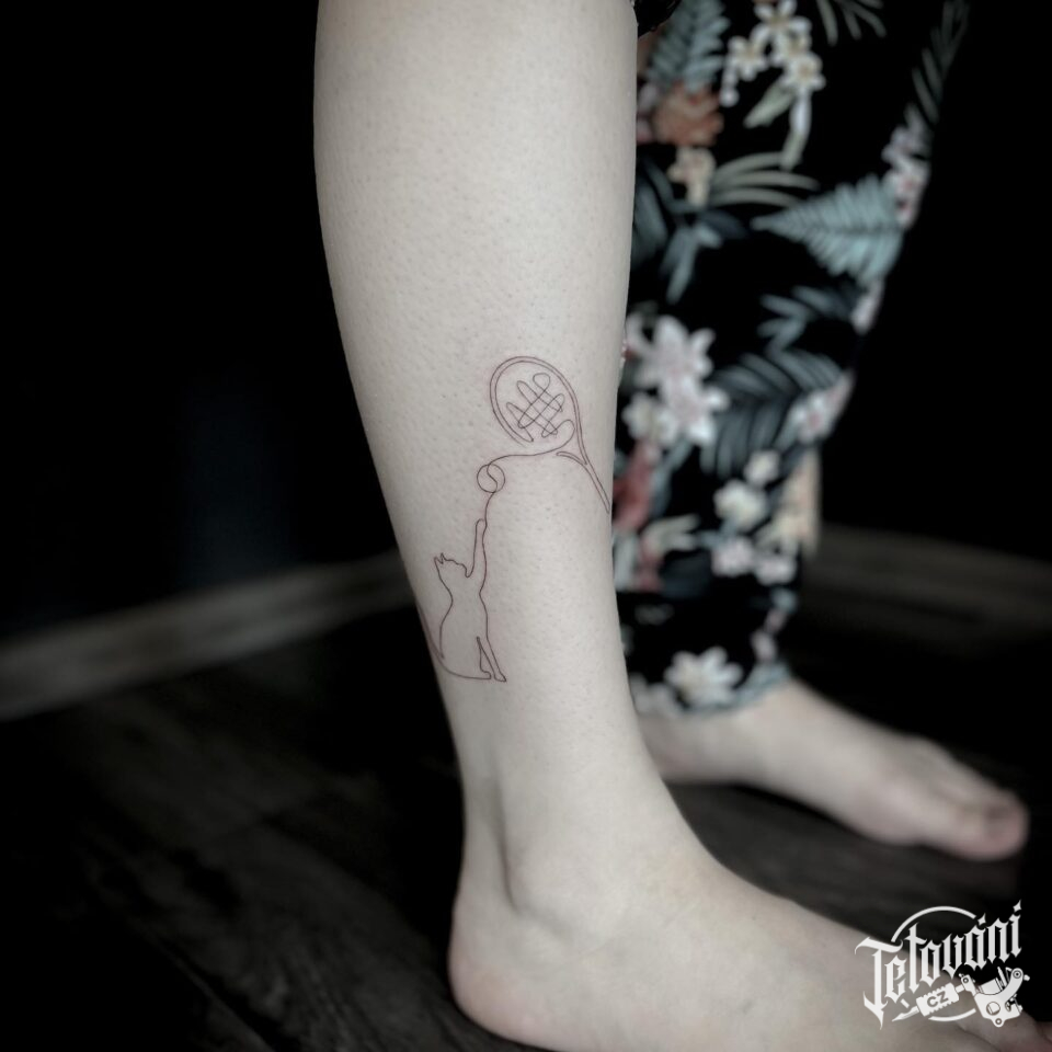 Tetování zvíře kočka na holeň