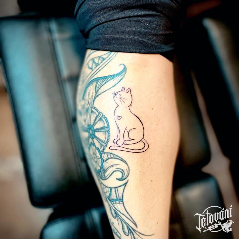 Tetování zvíře, kočka na holeni