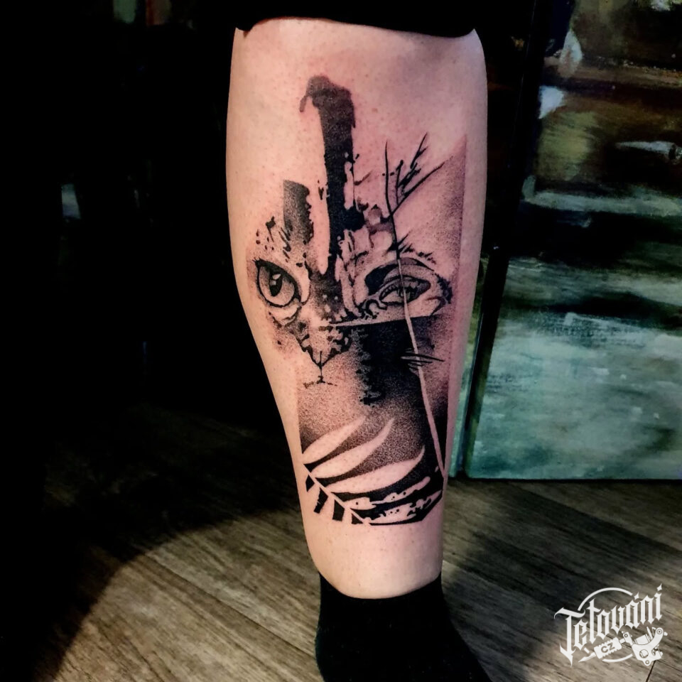 Tetování zvíře, kočka na holeni