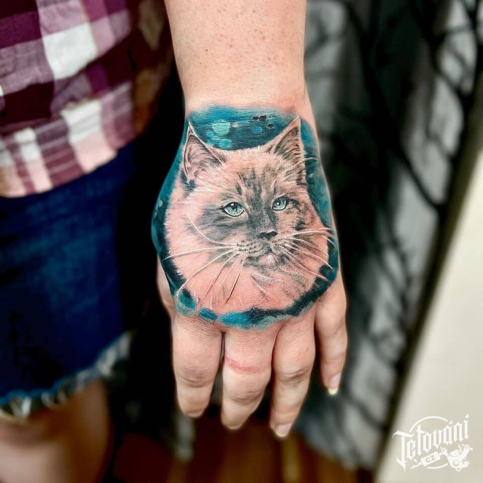 Tetování zvíře kočka na hřbet ruky