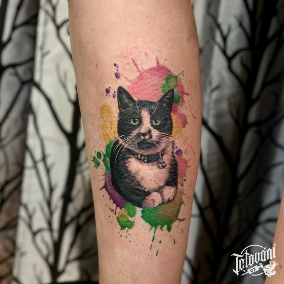 Tetování zvíře kočka na lýtko
