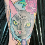 Tetování zvíře, kočka na lýtku
