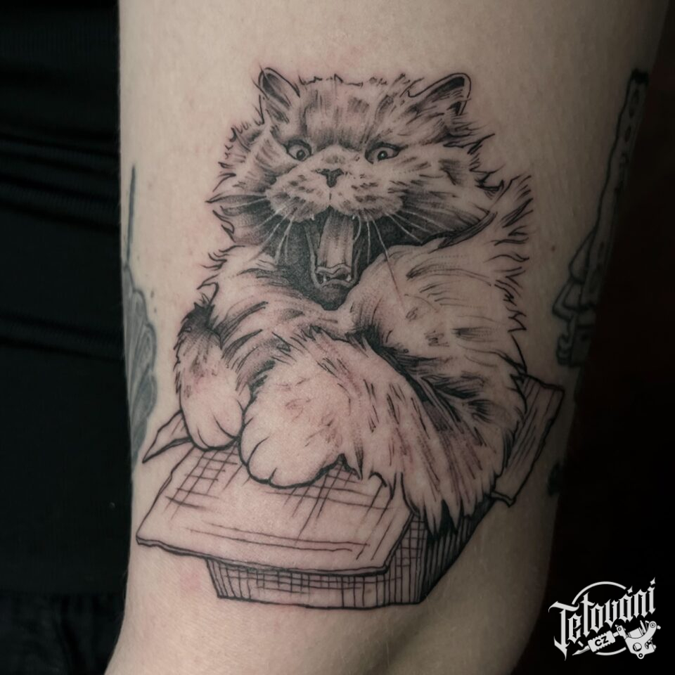 Tetování zvíře, kočka na paži