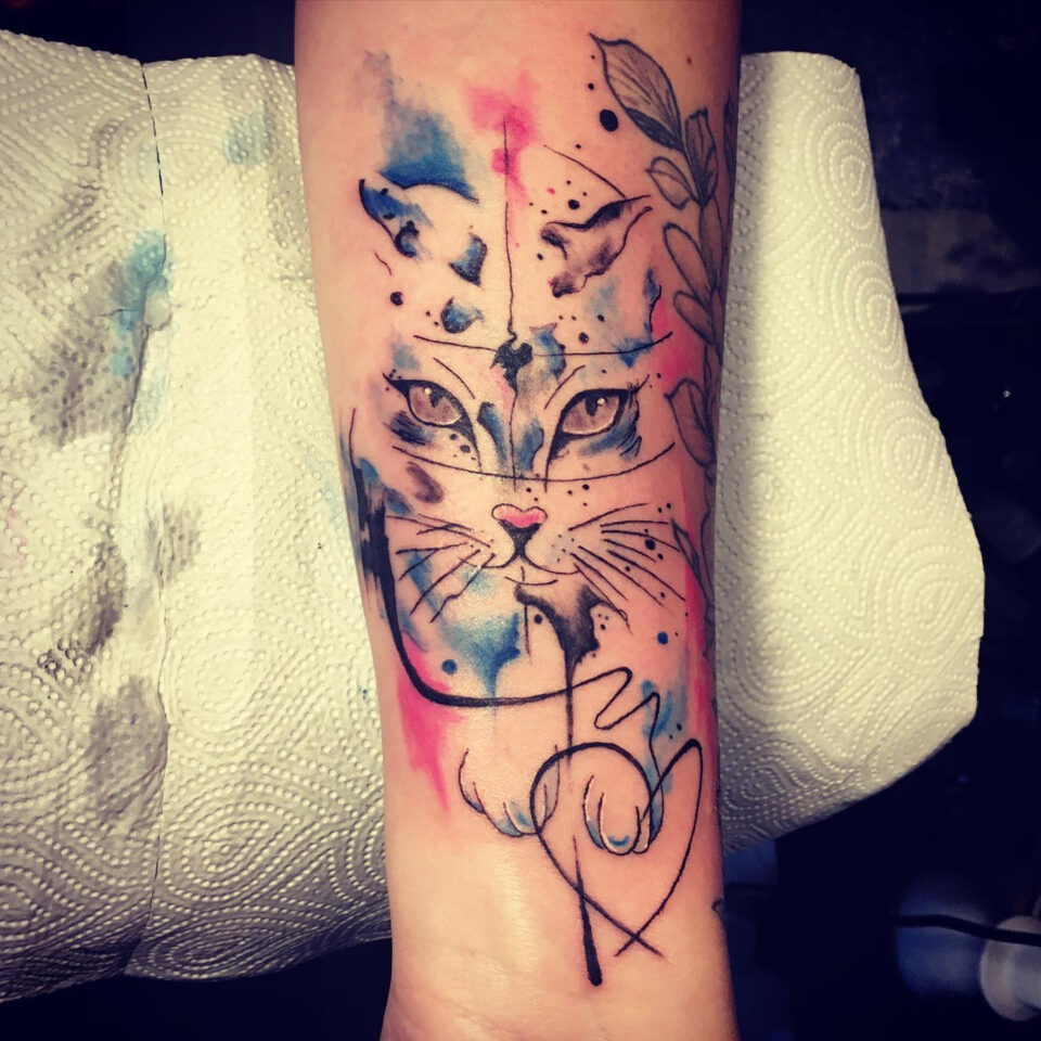 Tetování zvíře, kočka na předloktí