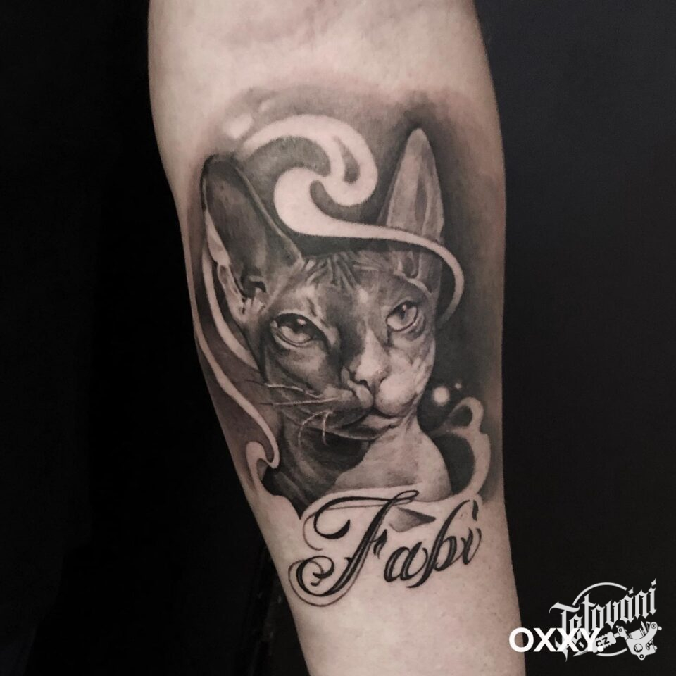 Tetování zvíře, kočka na předloktí