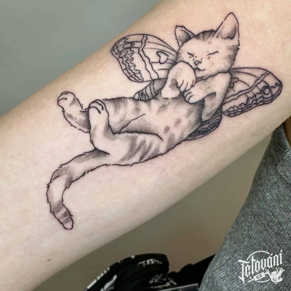 Tetování zvíře kočka na předloktí