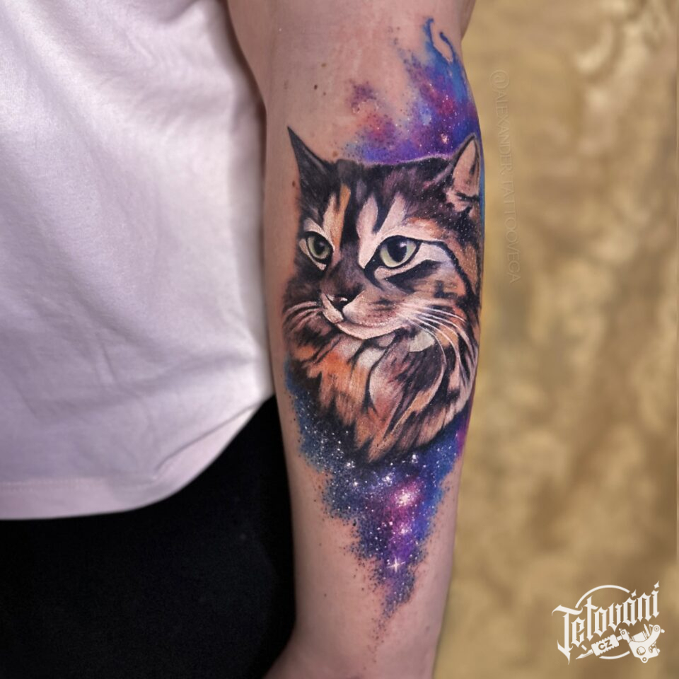 Tetování zvíře, kočka na předloktí