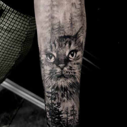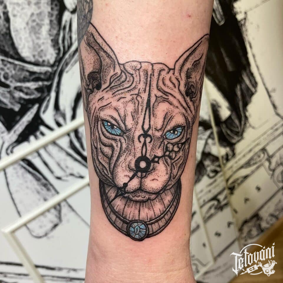 Tetování zvíře kočka na předloktí