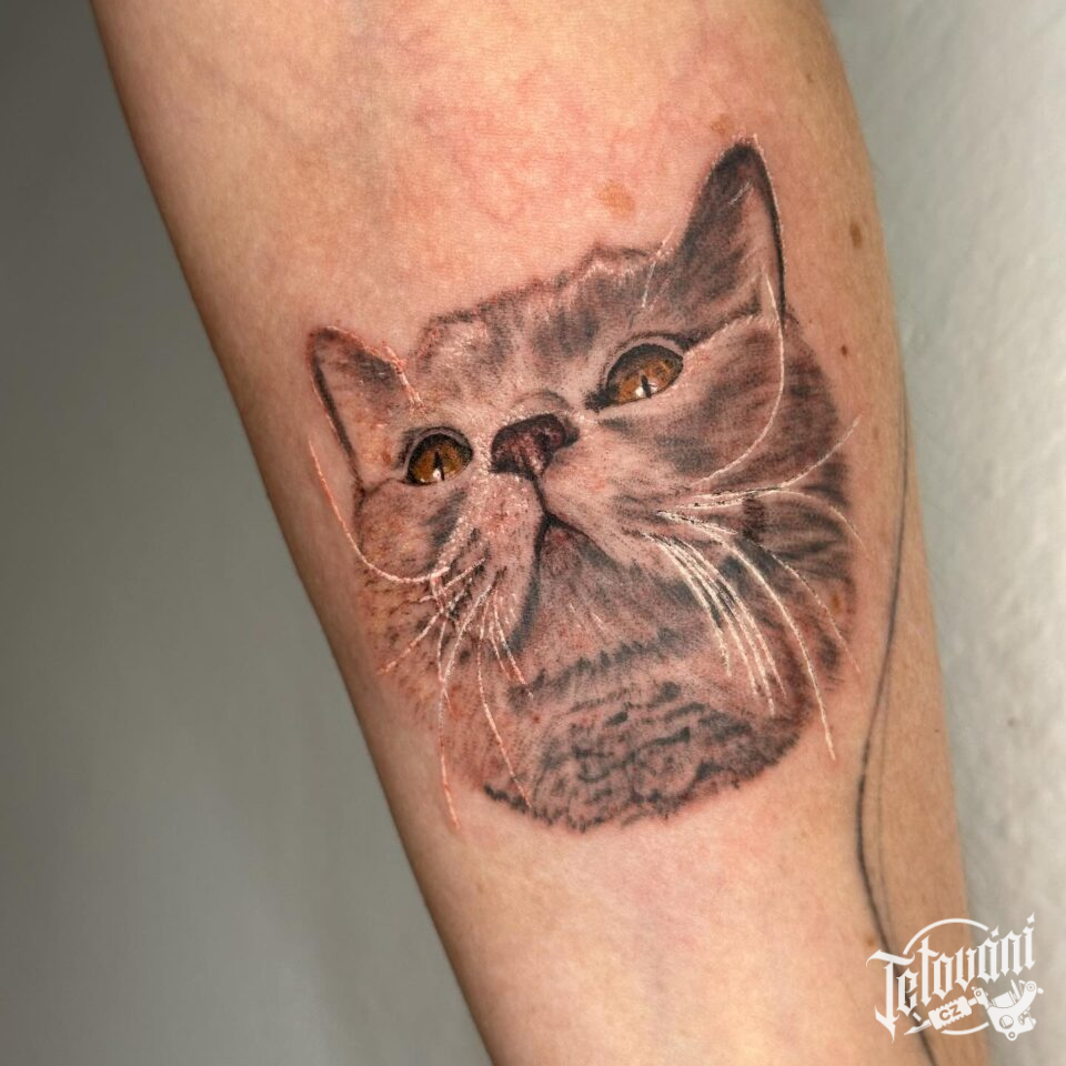 Tetování zvíře, kočka na předloktí