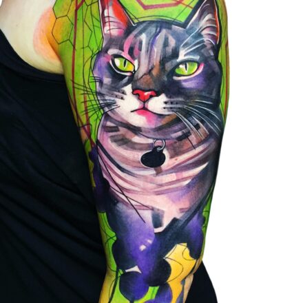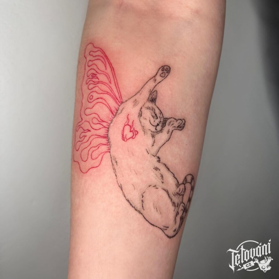 Tetování zvíře, kočka na předloktí
