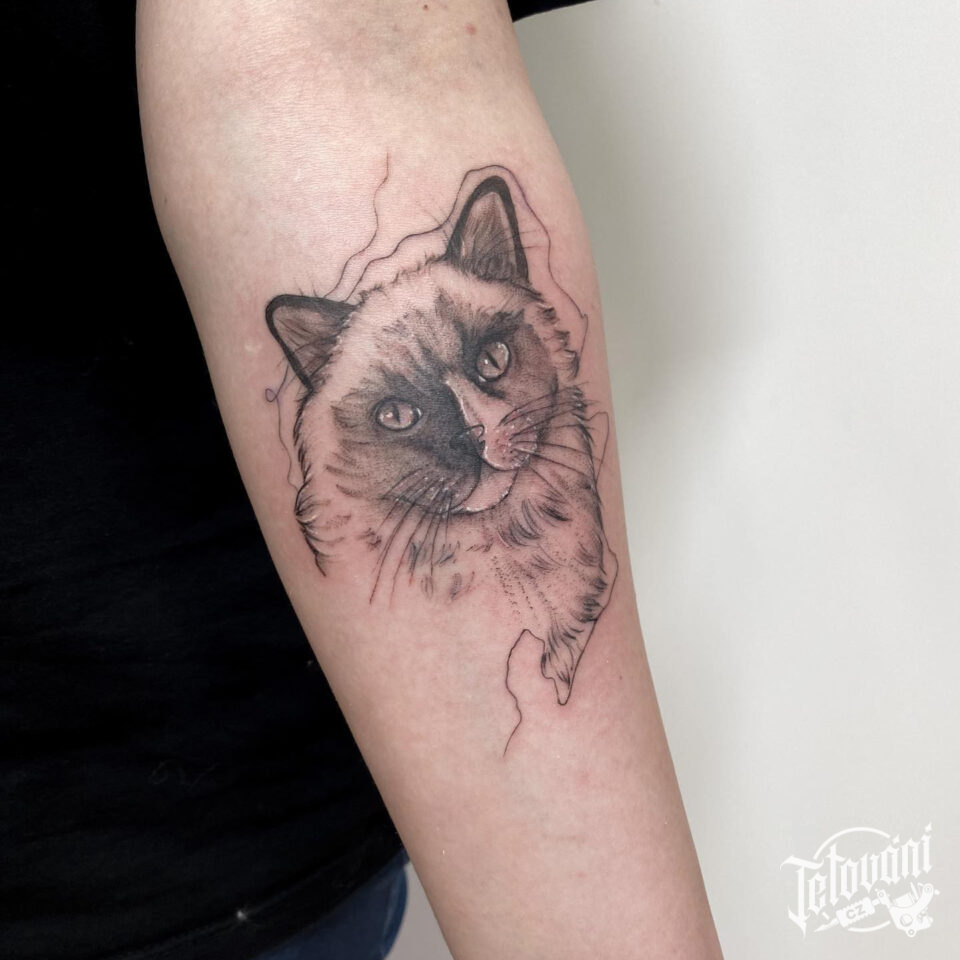 Tetování zvíře kočka na předloktí