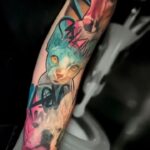 Tetování zvíře kočka, pes, portréty, nápisy na předloktí