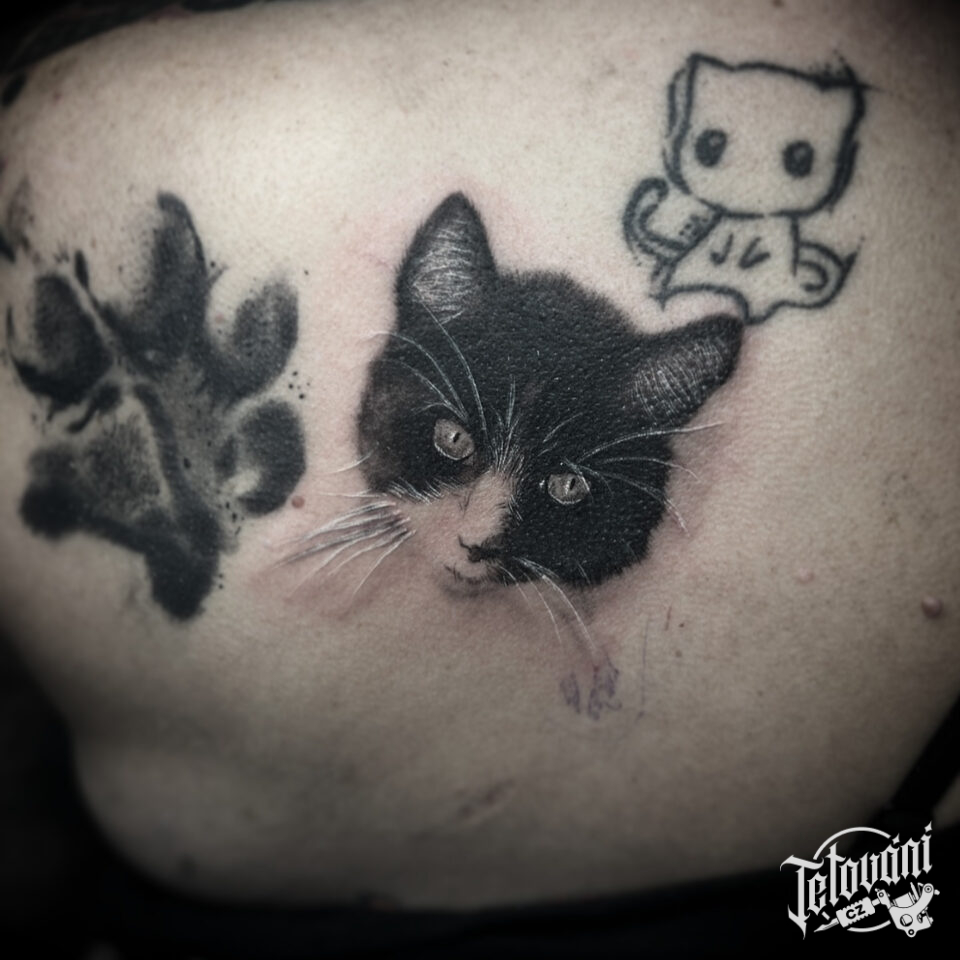 Tetování zvíře kočka, psí tlapka, packa na lopatku