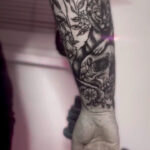 Tetování zvíře, kočka s lebkou na předloktí