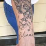 Tetování zvíře, kočka se jménem na předloktí