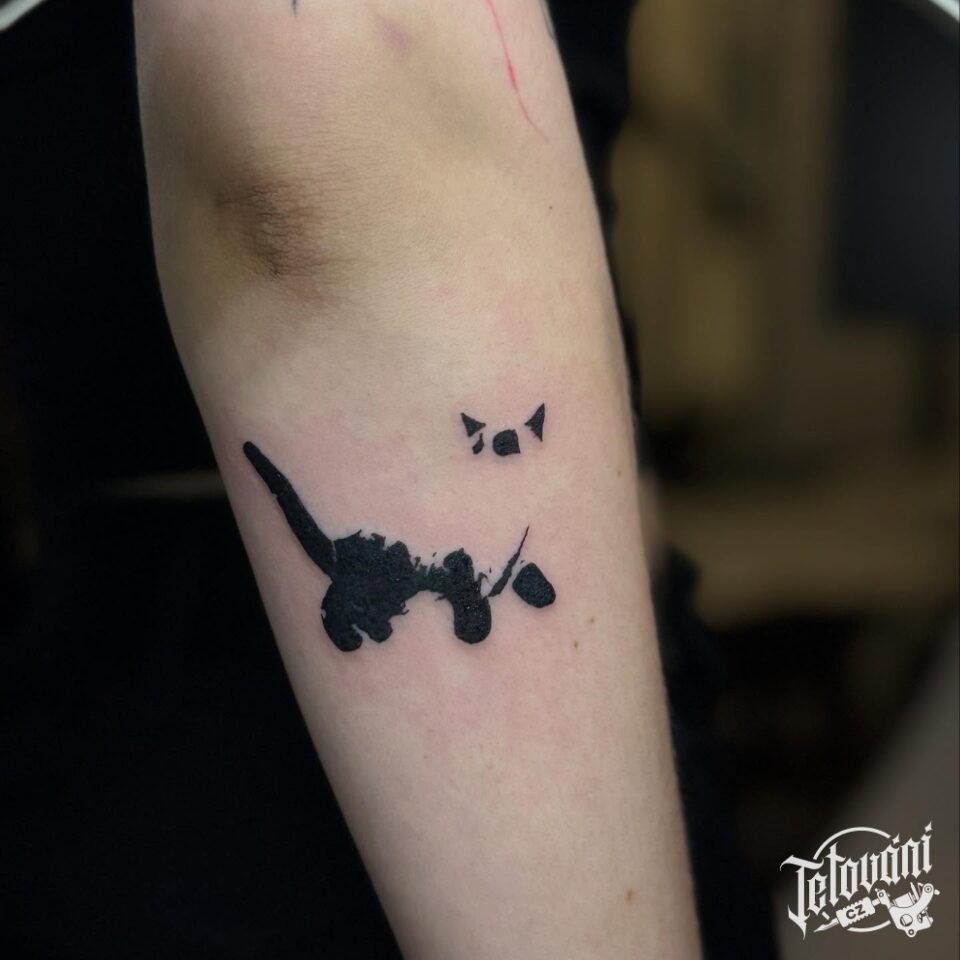 Tetování zvíře, kočka, silueta kočky na předloktí