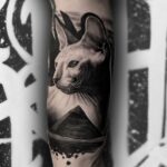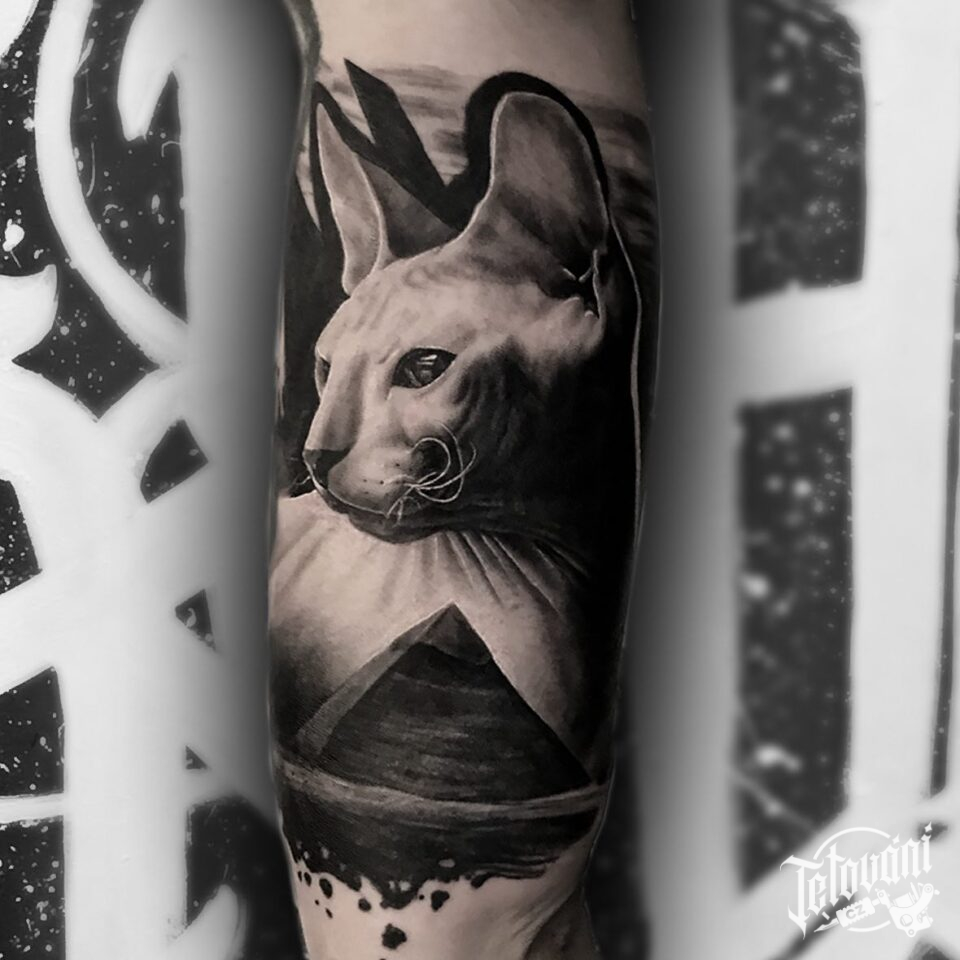 Tetování zvíře kočka, symboly, pyramida na předloktí