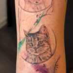 Tetování zvíře kočky, abstraktní čáry na předloktí